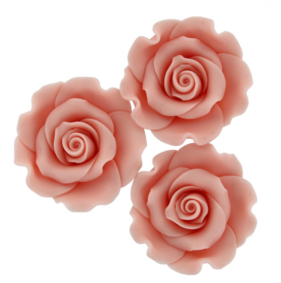Beautiful handmade sugar roses in pink, perfect for adding as a finishing touch to a wedding or special occasions cake. Made from a soft sugar paste, these edible sugar roses have a pleasing texture and light vanilla flavour.