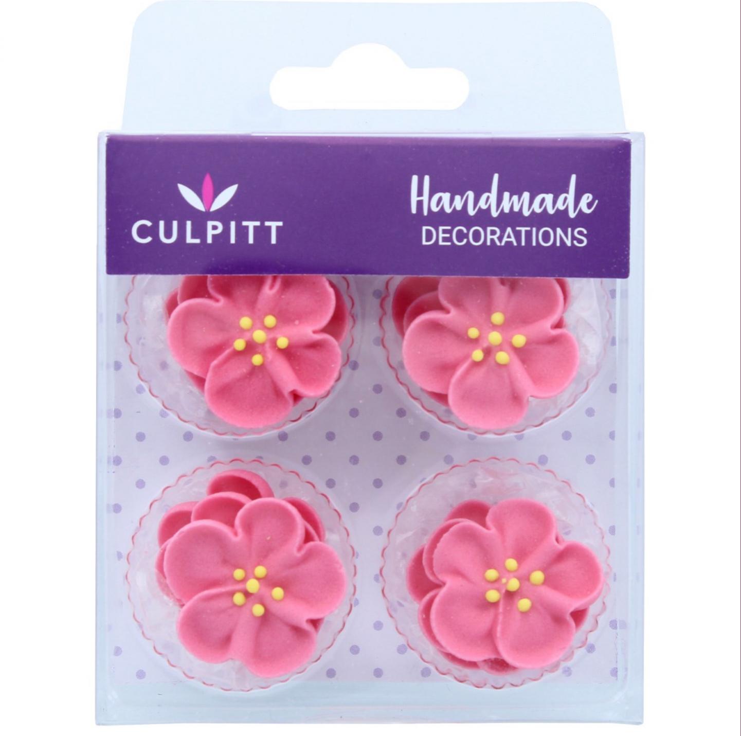 The delightful Pink Wild Roses Sugar cake decorations are individually hand piped using royal icing. They make great cupcake decorations, or they can be combined in a pattern to decorate a full sized cake.