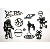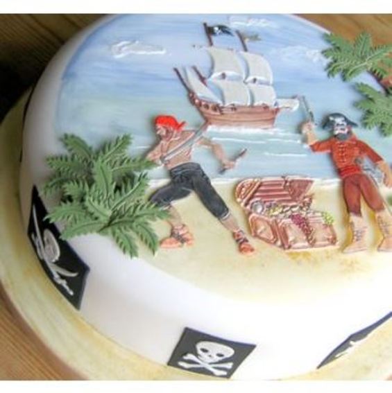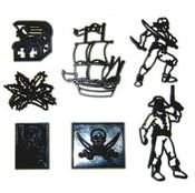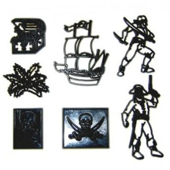 Patchwork Pirates Cutter / Embosser Set. This novelty cutter set includes all the cutters you need to make a great Pirate themed cake including pirates, treasure chest, flags, ships and foliage. Perfect for telling a story of stolen treasure The main pirate cutter measures approx 11cm x 3cm.