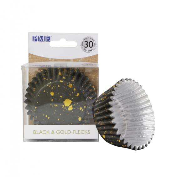 Cupcake Cases Foil Lined – Black & Gold Flecks Pk/30