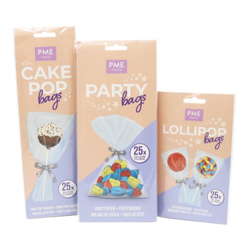 Find out moreSet of 25 clear plastic cake pop bags with silver ties, can also be used for sweets and treats.