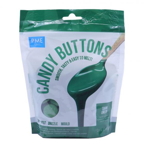 Dark green candy buttons, perfect for making cake pops and sweet treats. Packet contains pre-coloured, tempered, ready to melt buttons.