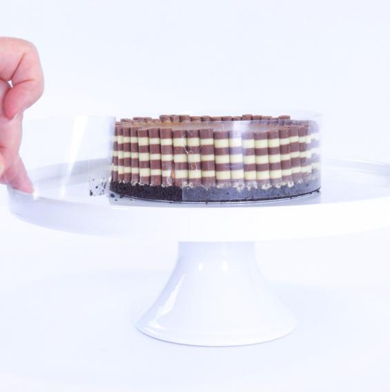 The acetate rolls are transparent plastic that provides clear visibility and does not affect the appearance and decoration of the cake.