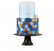 Why not cut shapes from different coloured sugar paste to make vibrant designs, which you know will fit into each other. You can cover a whole cake, or even make a border, the possibilities are endless. You can even cover some of the biggest cakes quickly due to the 10 tiles being produced each time. For more elegant designs why not use pastel colours to decorate with. You could even use the lustre colours to really make them stand out. Why not make a honeycomb themed design.