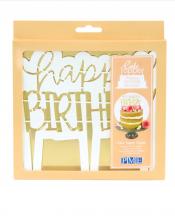 This Happy Birthday cutter in the modern font works best with flower and modelling paste as it creates a strong topper.