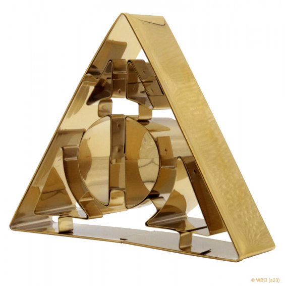 A stunning metallic gold metal cutter in the 'Deathly Hallows' shape. Perfect addition to your cutter collection!