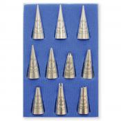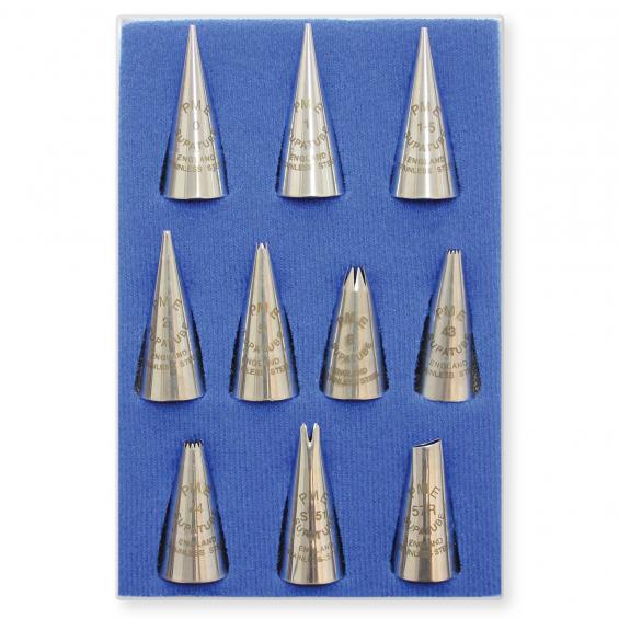 This icing tube box is a perfect way to keep all your piping nozzles tidy & in one place. This box comes with 10 nozzles which are: 0, 1, 1.5, 2, 5, 8, 43, 44, 51 & 57R. Perfect for your piping needs. - TS63