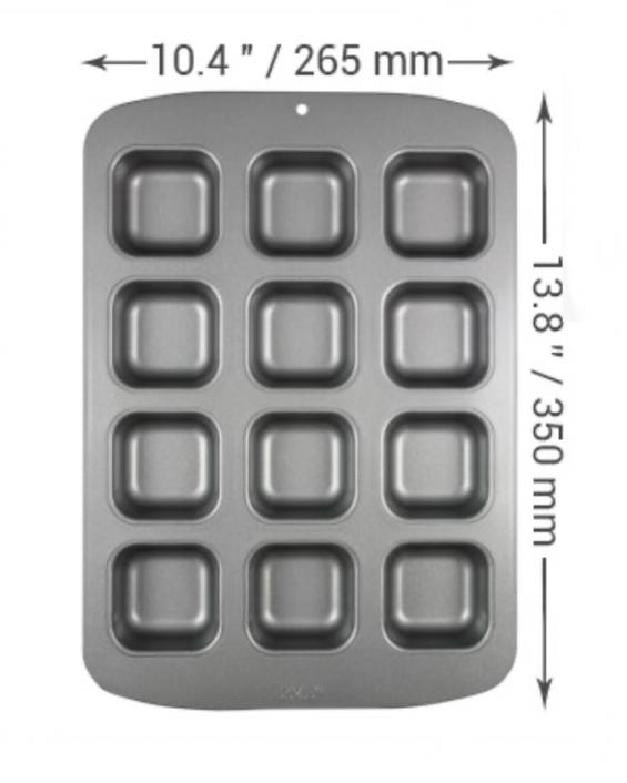 Non Stick - 12 Cup Mini Square Cake Pan (35 x 26.5 x 3cm / 13.8 x 10.4 x 1.2”)