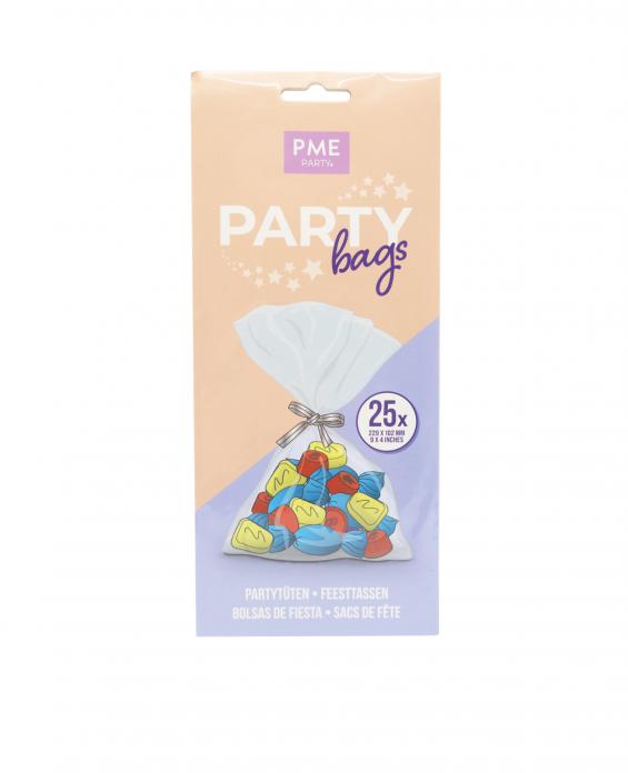 Clear plastic party bags with metallic silver ties, perfect for sweet treats, easter eggs and much more.