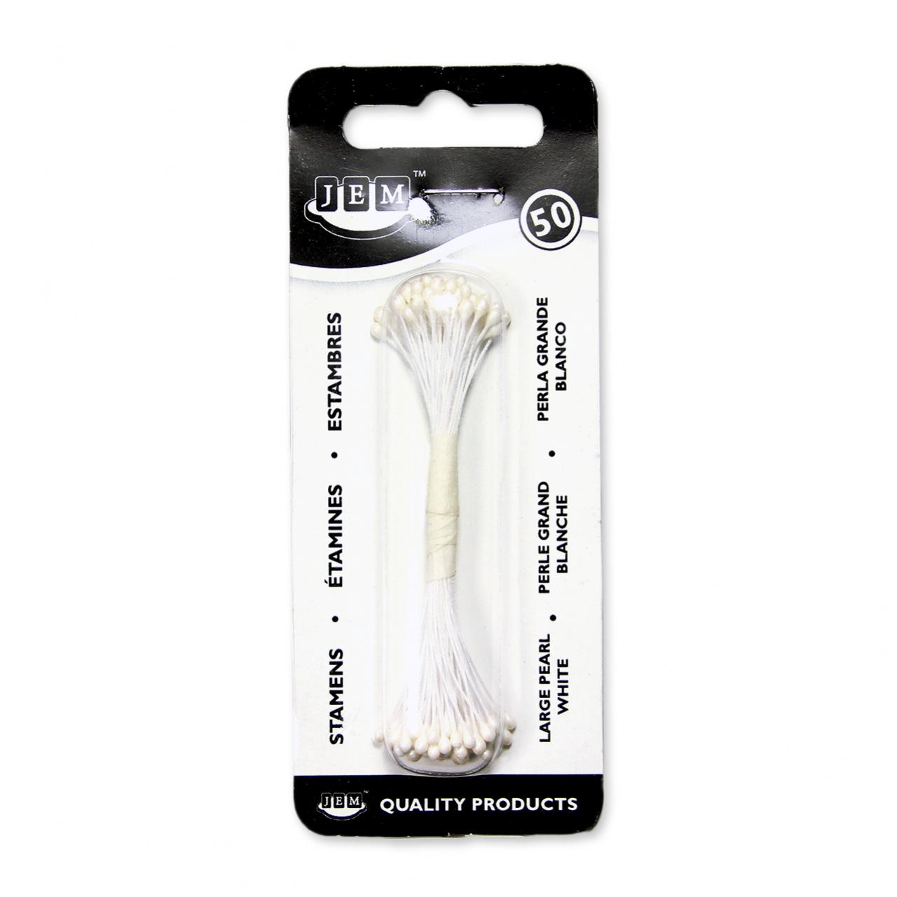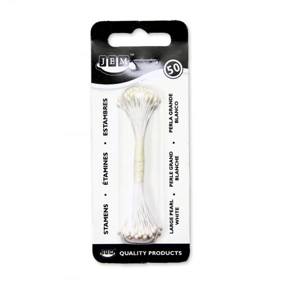 Bunch of 50 pearlized double ended stamens that can be cut to desired size. Dimension: 3 mm tip (0.12 in), 74 mm long (2.9 in). Available in a wide range of colours and sizes - STAM12W