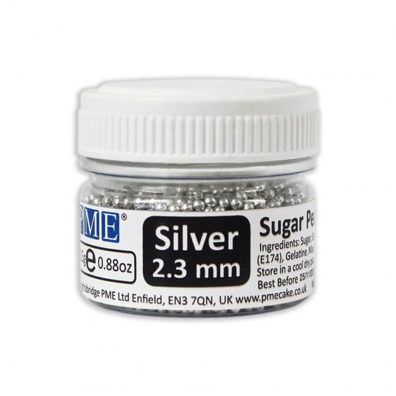 Each sugar pearl is approximately 2.3mm and the pot contains 25g.