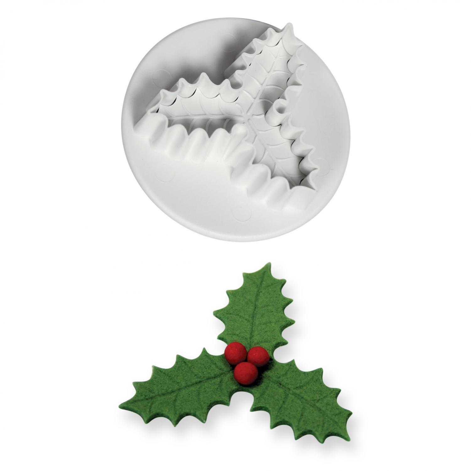 This small veined three leaf holly plunger cutter is a perfect addition on top of any christmas cake. This plunger cutters are easy to use, simply push down into the rolled out fondant icing & push ... Find out more