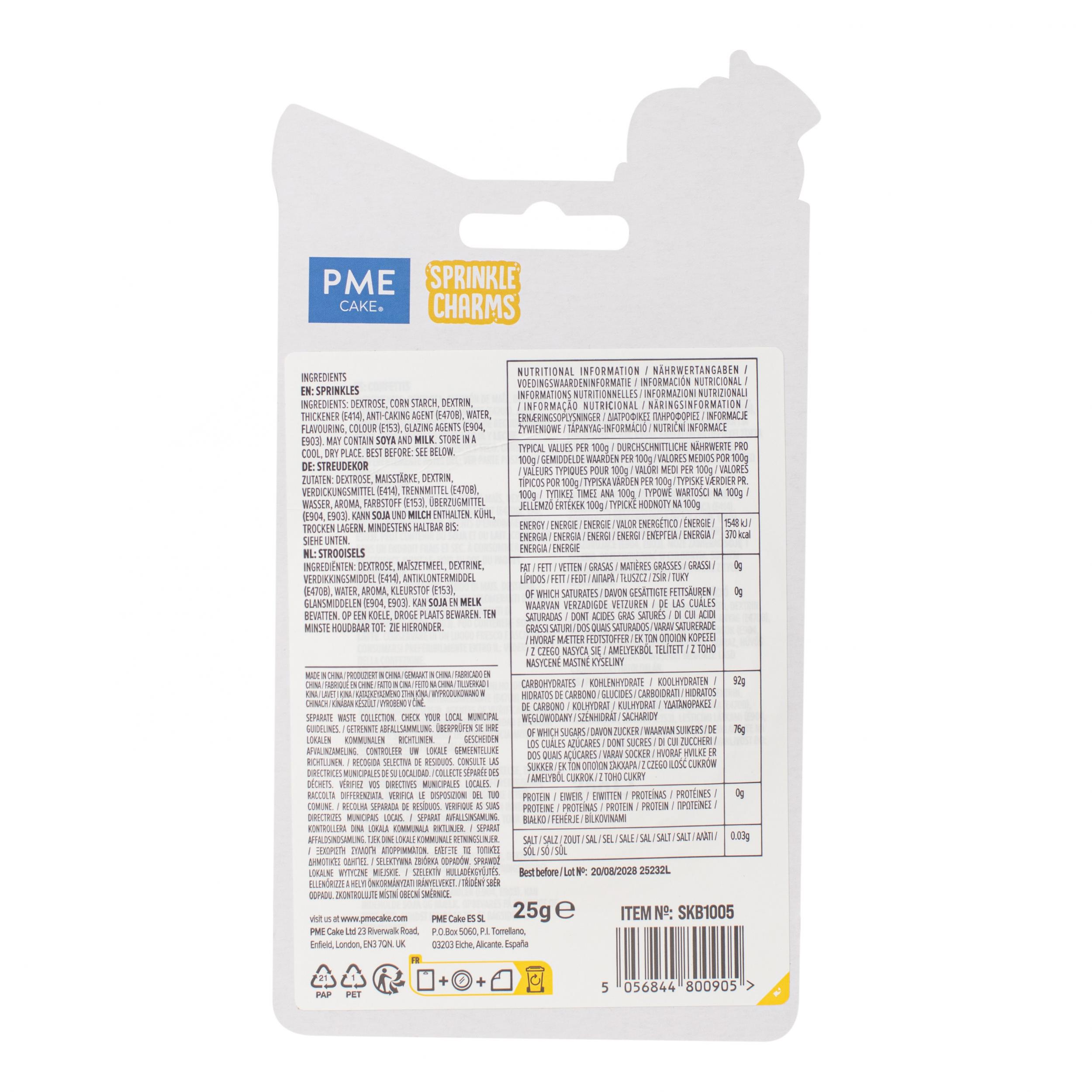 Add instant personality and fun to your bakes with these playful Sprinkle Charms from PME. Sprinkle on the charm with PME.