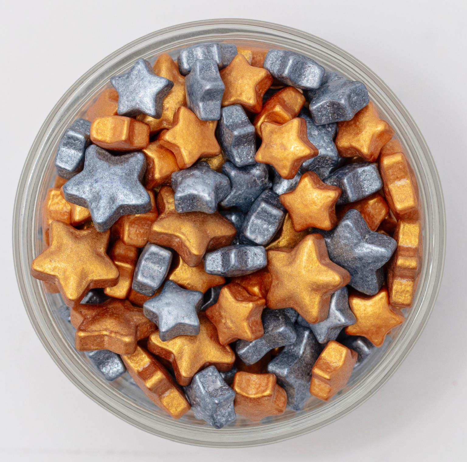 25g gold and silver star sugar shapes