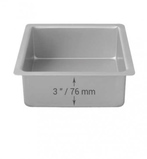 7" x 7" x 3" pan - Seven inch square by Three inch deep cake tin.