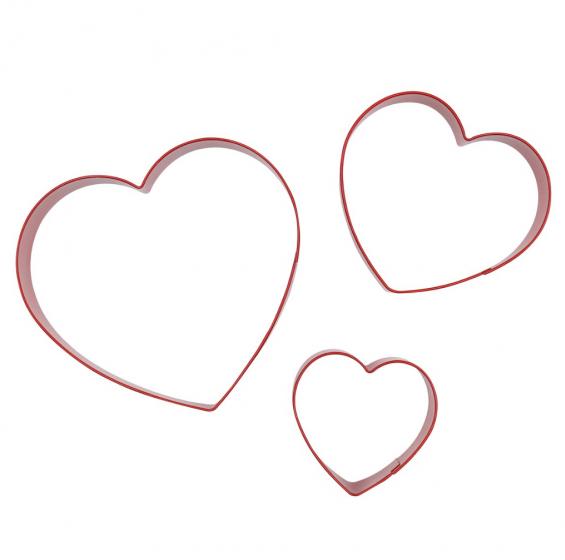 Set contains 3 heart-shaped cookie cutters that nest together for easy storage. Dimensions: Small 5cm/1.9" , Medium 7.5cm/3" , Large 10cm/4"