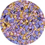 Featuring a bright and colourful blend of lilac, purple, gold and pale pink shimmer hearts, pearls, nonpareils and sugar strands. Perfect for adding a fun finish to any cake, cupcakes, cookies, traybakes, ... Find out more