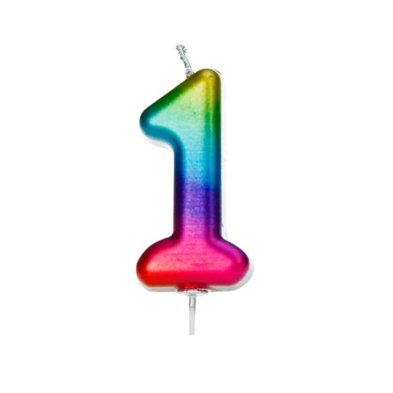 Make a wish on this gorgeous number 1 candle! The contemporary font and rainbow metallic finish create an eye-catching custom cake topper.