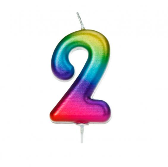 Make a wish on this gorgeous number 2 candle! The contemporary font and rainbow metallic finish create an eye-catching custom cake topper.