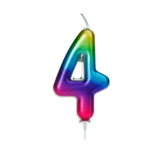 Make a wish on this gorgeous number 4 glitter candle! The contemporary font and rainbow glitter finish create an eye-catching custom cake topper.