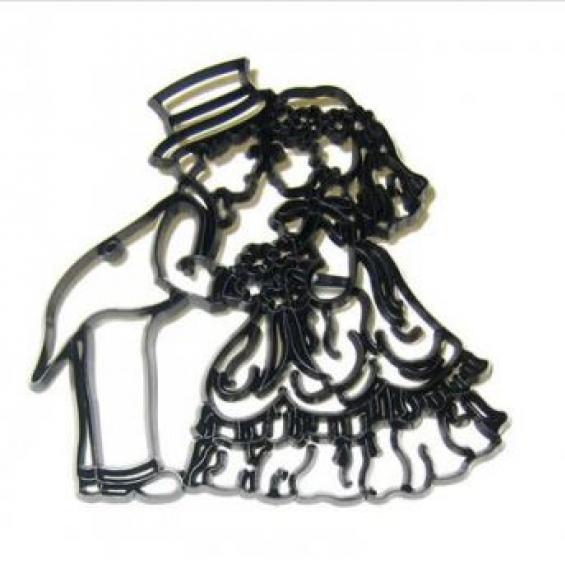 Bride and Groom Reverse Cutter from the Patchwork Cutter range is suitable for making figures for wedding designs. As with all Patchwork cutters this is very versatile and can be used in many different ways. Looks lovely flat on a plaque or cake or can be cut out, dried, and placed on the reverse of the Bride & Groom cutter to stand on top of a tiered cake. It measures 9 x 9cm and is beautifully detailed.