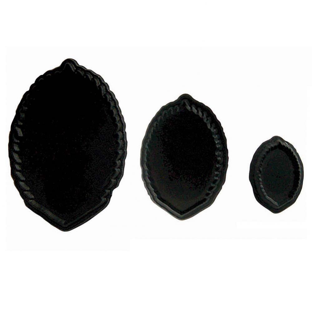 This rose leaf set is perfect to go along side those sugar flowers. This set comes with 3 cutters in various sizes, 13 x 19mm, 22 x 34mm & 30 x 47mm. - 103FF010