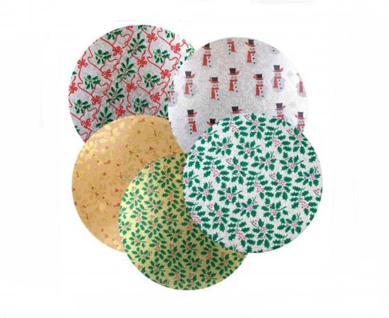 Ten Inch - 10" Round Double Thick Christmas cake boards ideal for presenting and transporting cakes and bakes.