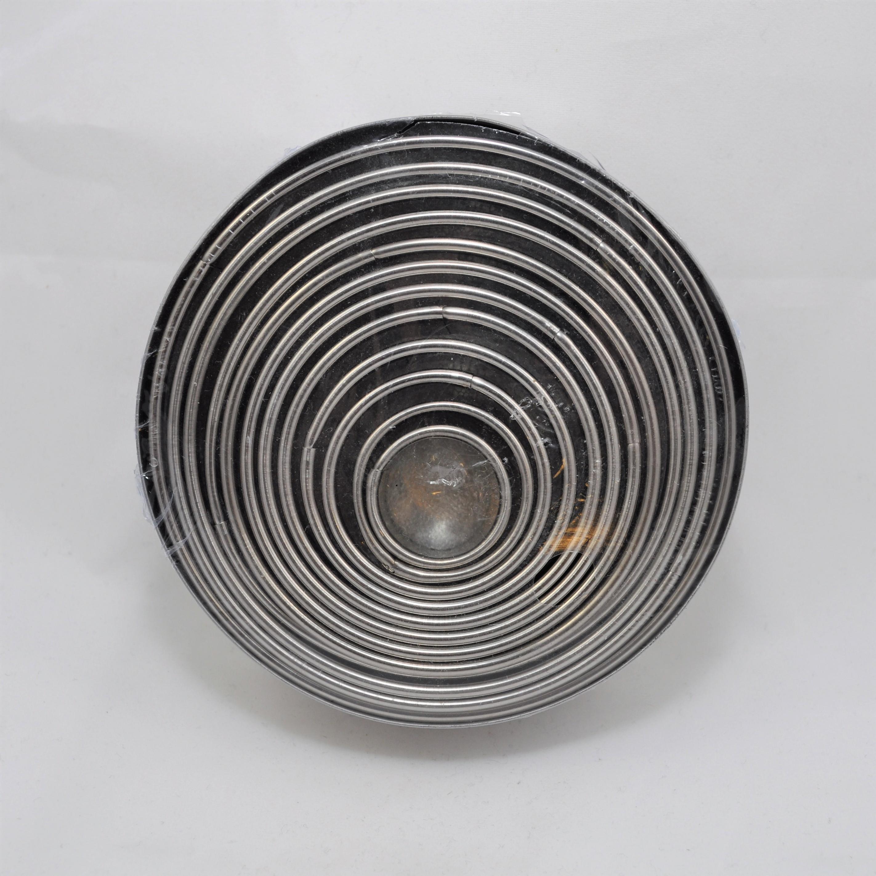 Why not use these round cutters to make biscuits, sanswich cookies & fondant decorations for your cakes. This set of comes with 12 cutters & measure 25 - 115mm.