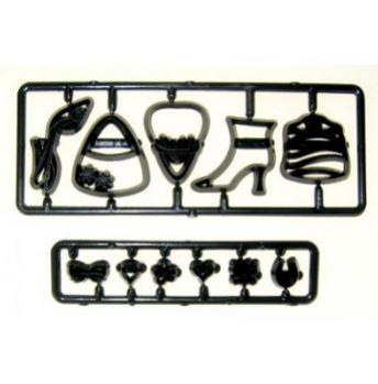 Shoes, Bags and Confetti Cutter / Embosser Set. This great cutter set from Patchwork Cutters consists of a selection of shoes and handbags. Great for girly cakes! It also includes some small confetti cutter / embossers which are perfect for all types of cakes from wedding to novelties. Each piece can be embossed and painted or cut out and decorated with the small pieces. The confetti looks great around the base of a wedding cake and all of the shapes are perfect for cupcakes. Why not use it along with the parcel cutter and the fashion girl cutters for a fabulous 'Shop til you drop' style cake. Bags and shoes measure around 4cm.