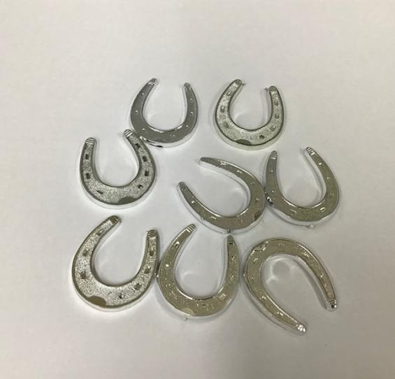 Find out moreSilver colour plastic horseshoe. Approx size: 38mm.
