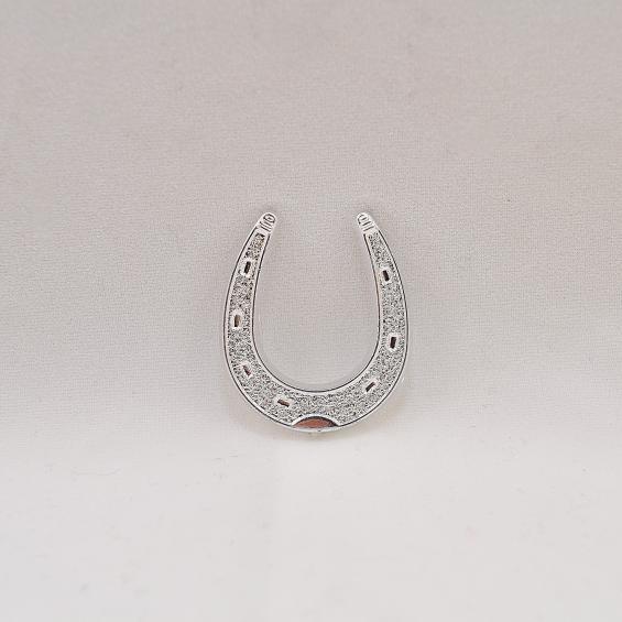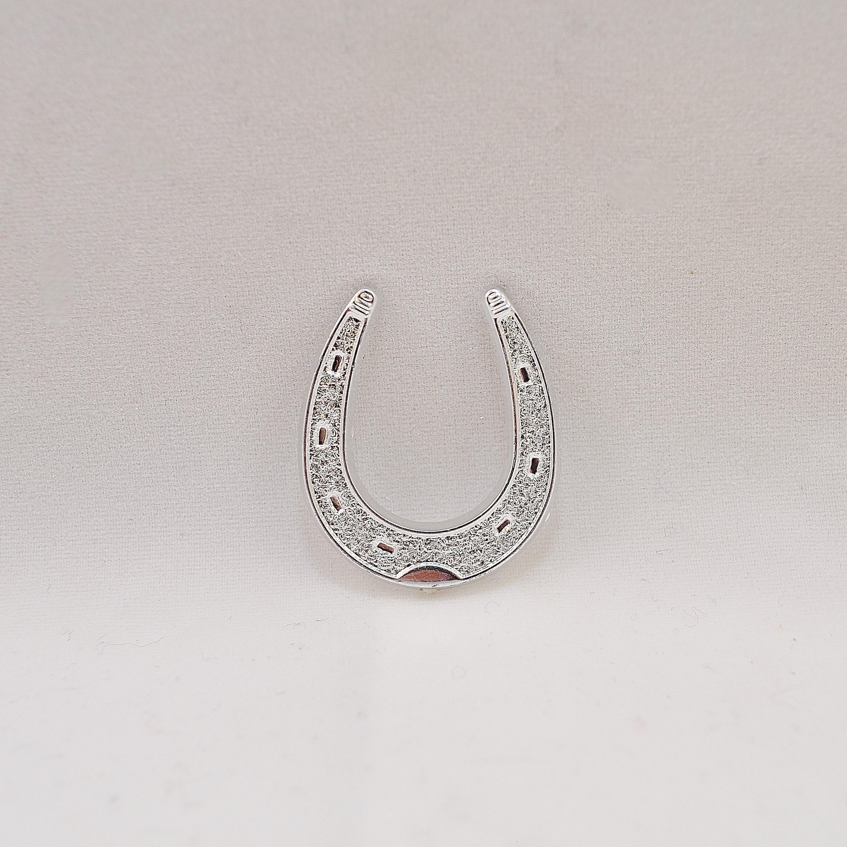 Silver colour plastic horseshoe. Approx size: 16mm. This product is suitable for contact with sugar.