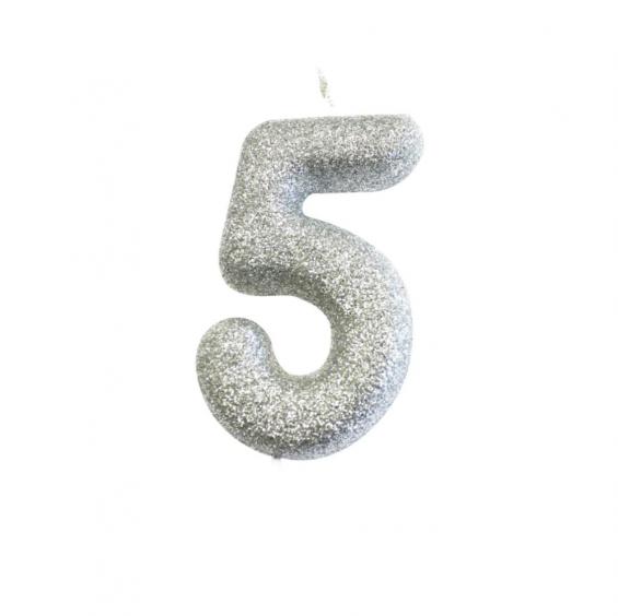 Make a wish on this gorgeous number 5 glitter candle! The contemporary font and silver glitter finish create an eye-catching custom cake topper.