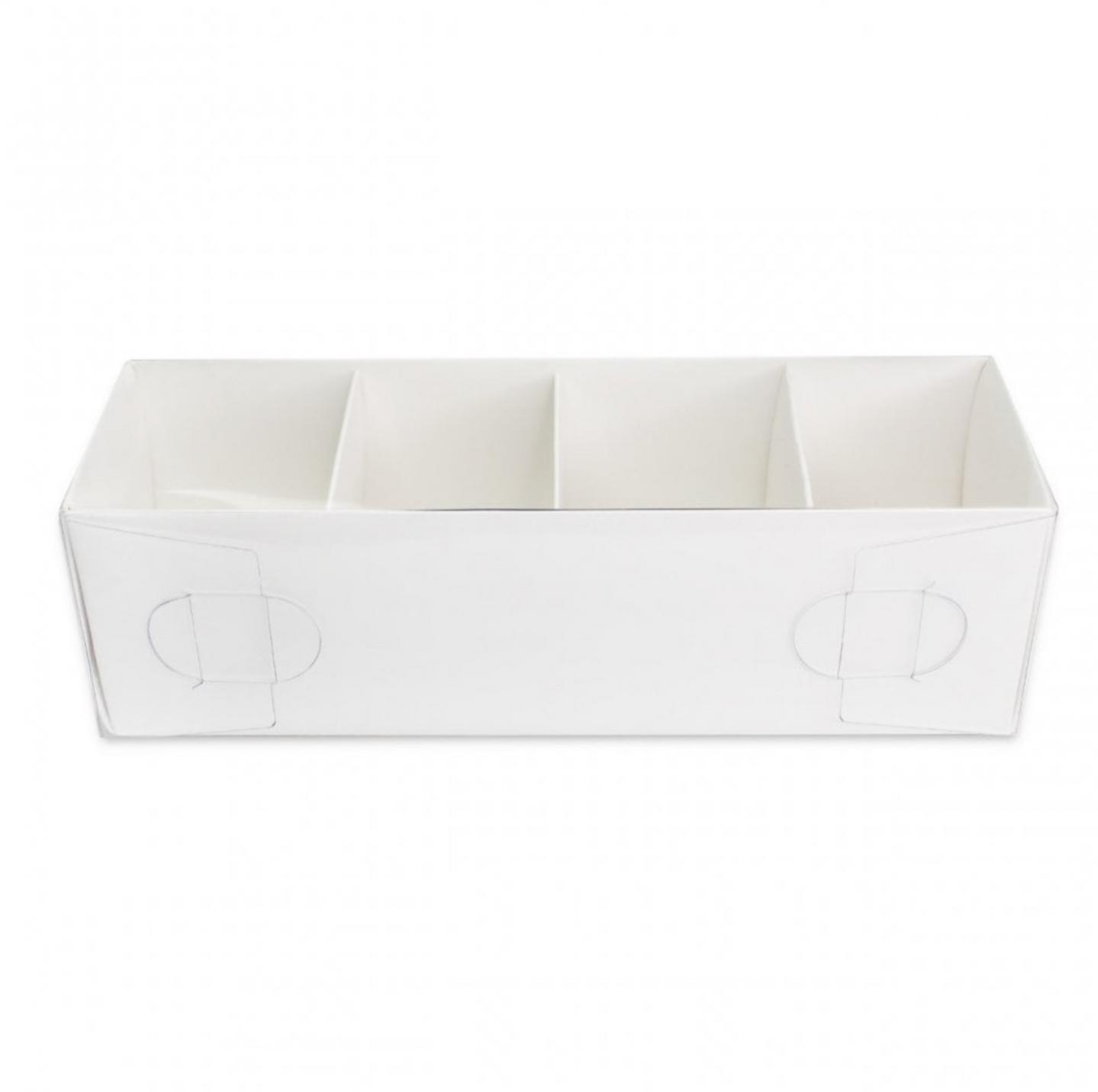 Pack of 10 white confectionery / small treat transportation box with full clear lid - holds 4