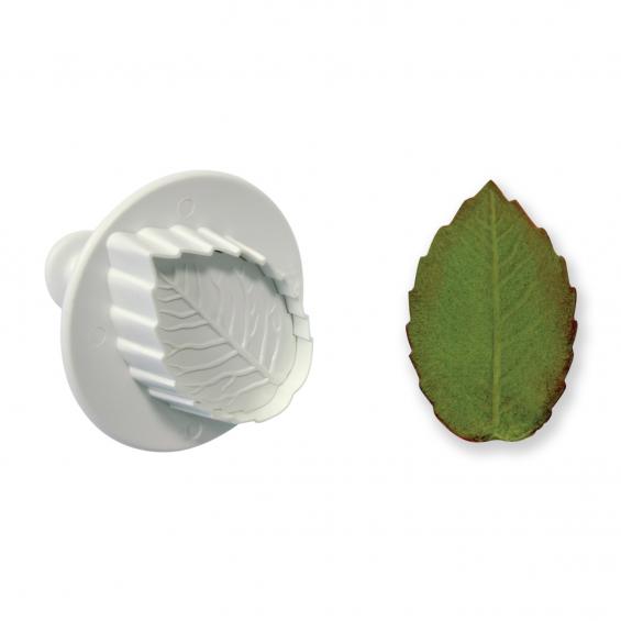 This Veined Rose Leaf Plunger Cutter made from durable plastic is easy to use and clean. Use the cutter to make pretty veined rose leaves. The cutter cuts out the shape of the leaf and the plunger gives an embossed vein effect. Perfect for enhancing your sugar flowers. - RL527
