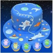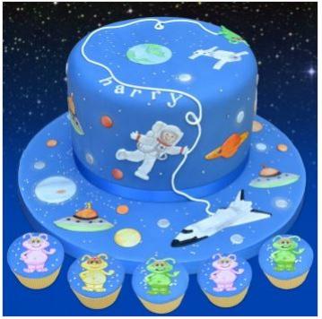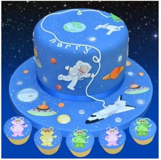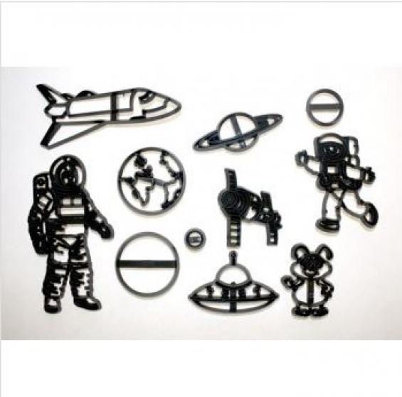 Space Cutter / Embosser Set. This is a brilliant cutter set from Patchwork Cutters and it has a great selection of Space related motifs including Spacemen, Aliens, Spacecraft including the Space Shuttle and planets. Everything for the young space enthusiast, or use the larger adult spaceman for the more serious astronauts. All you could want in fact for a great Space Cake! Large Spaceman measures approx 12cm.