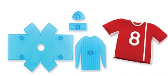 This sports skirt cutter set is perfect for any football fans cake. This set comes with 4 pieces, shirt (149 x 200mm), collar (76 x 89mm), stripes (44 x 16mm) & skirt detail (76 x 89mm). - 101CF010