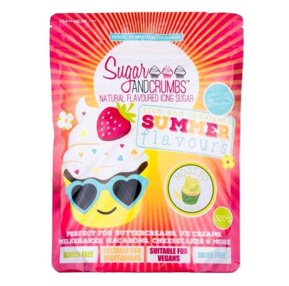 Sugar and Crumbs Icing Sugar Mojito 500g, is a twist on a favourite cocktail drink without the Alcohol. This flavour has a delicious kick of lime too, it's one to enjoy when making cheesecakes, ice-cream and lots of other delicious desserts.