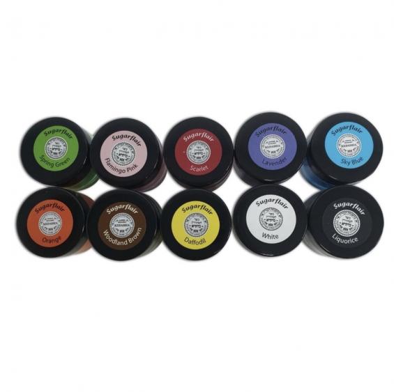 This Paste Colour Collection contains 10 x 10g pots of Sugarflair paste colours, ideal for colouring your fondant, modelling paste and royal icing.