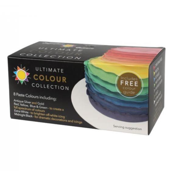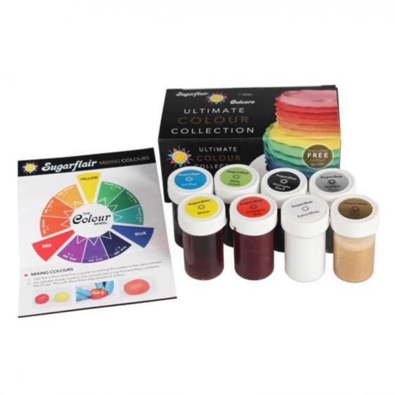 The Ulitmate colour collection set of 8 includes pots of Sugarflair paste colours, a colour wheel and hints helping you get the most out of your paste colours.