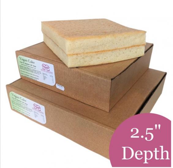 This 10" Square Vegan eggless sponge is a soft, moist cake which will keep in good condition for at least five weeks. It is a more fragile cake than the standard genoese so it will be easier to trim and handle once chilled in the fridge or freezer.