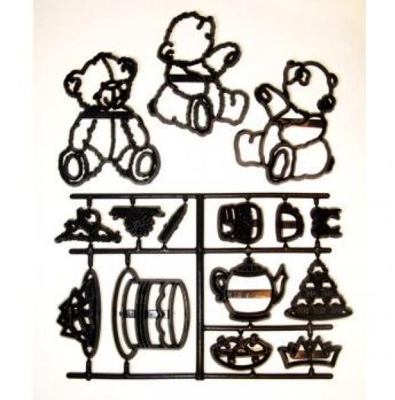 This Teddy Bears picnic cutter set from Patchwork cutters contains all the cutters you need for a pretty picnic cake top including 2 different teddies and all the picnic food including teapots and cups, cakes and honey. Perfect for a child's birthday cake or many other occasions. Two teddies and a panda have everything they need for a fabulous party with this 12-piece party set, even a birthday cake! The bears are approximately 7cm high.