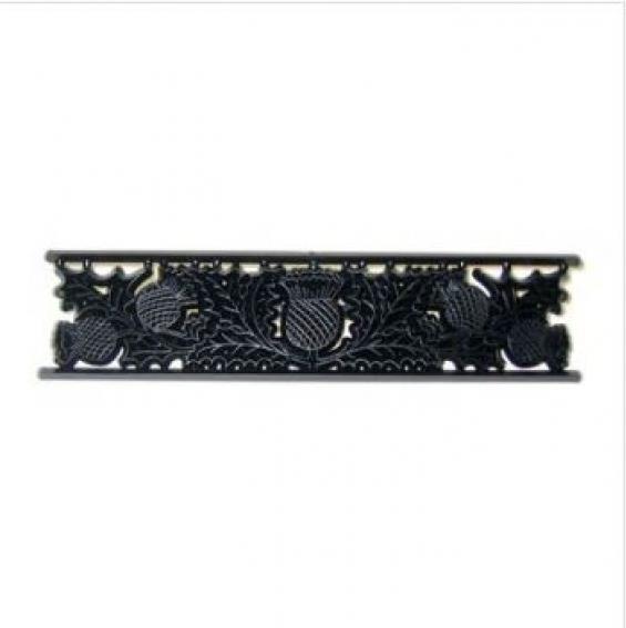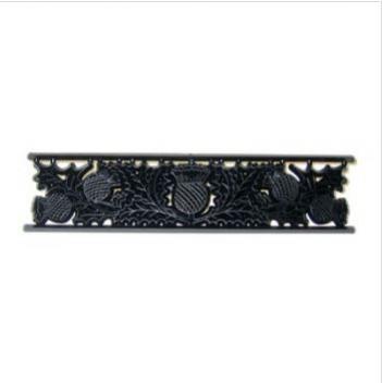 The Patchwork Cutters Thistle Side design cutter / embosser is ideal for Scottish themed cakes. It makes a wonderfully detailed thistle ribbon design which can be used as a cake side or can be cut into a free standing ribbon design as shown in the picture. This strip cutter can be painted and used around the side of a cake or made into bow loops. Size 3.2 x 14.5cm.