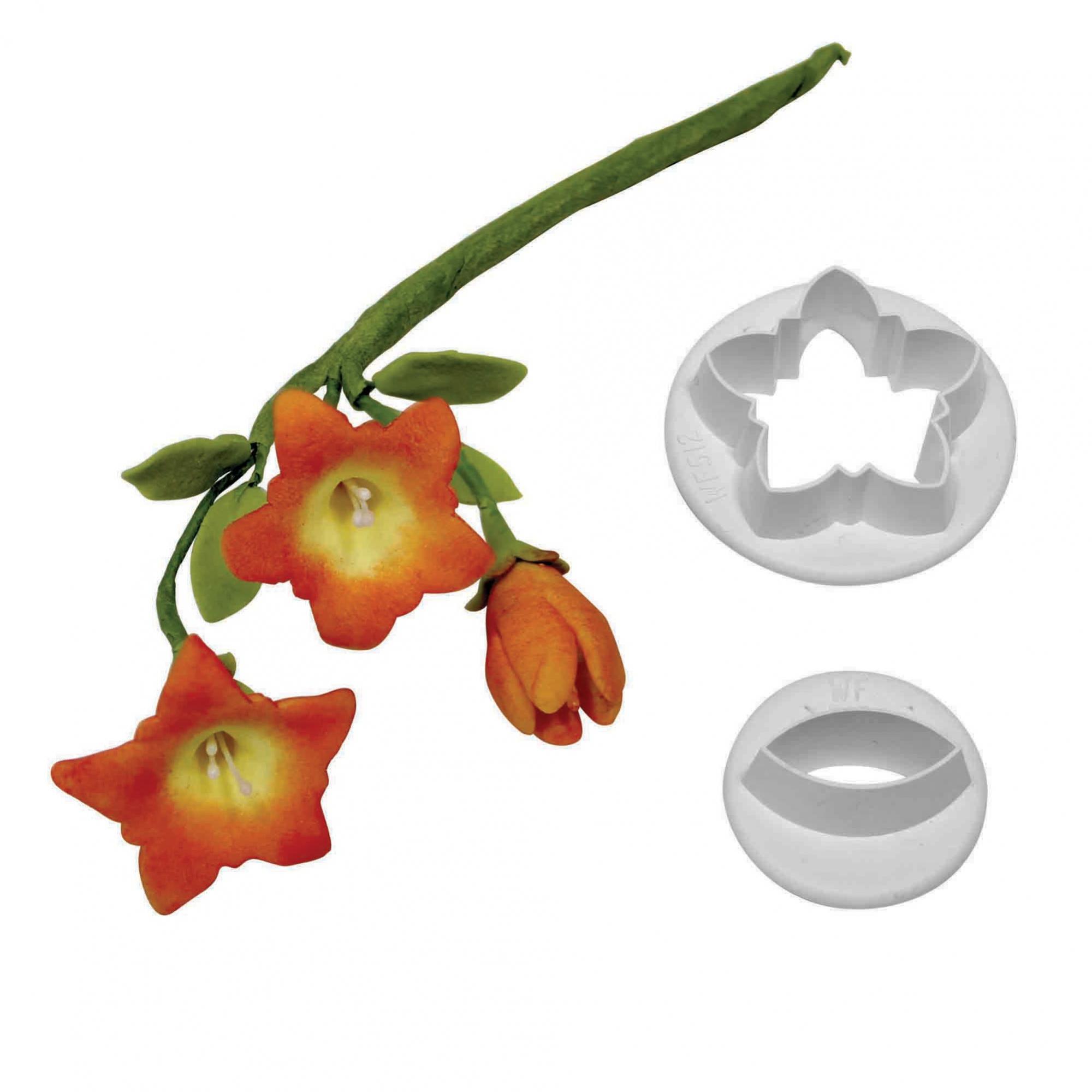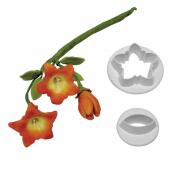 These trumpet gentian cutters come in a set of 2 works best with fondant or flower modelling paste to create beautiful leaves to go along side flowers for the top of your cakes. These cutter range in size, the petal being 25mm & the leaf 16mm. - TG453