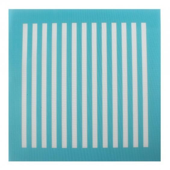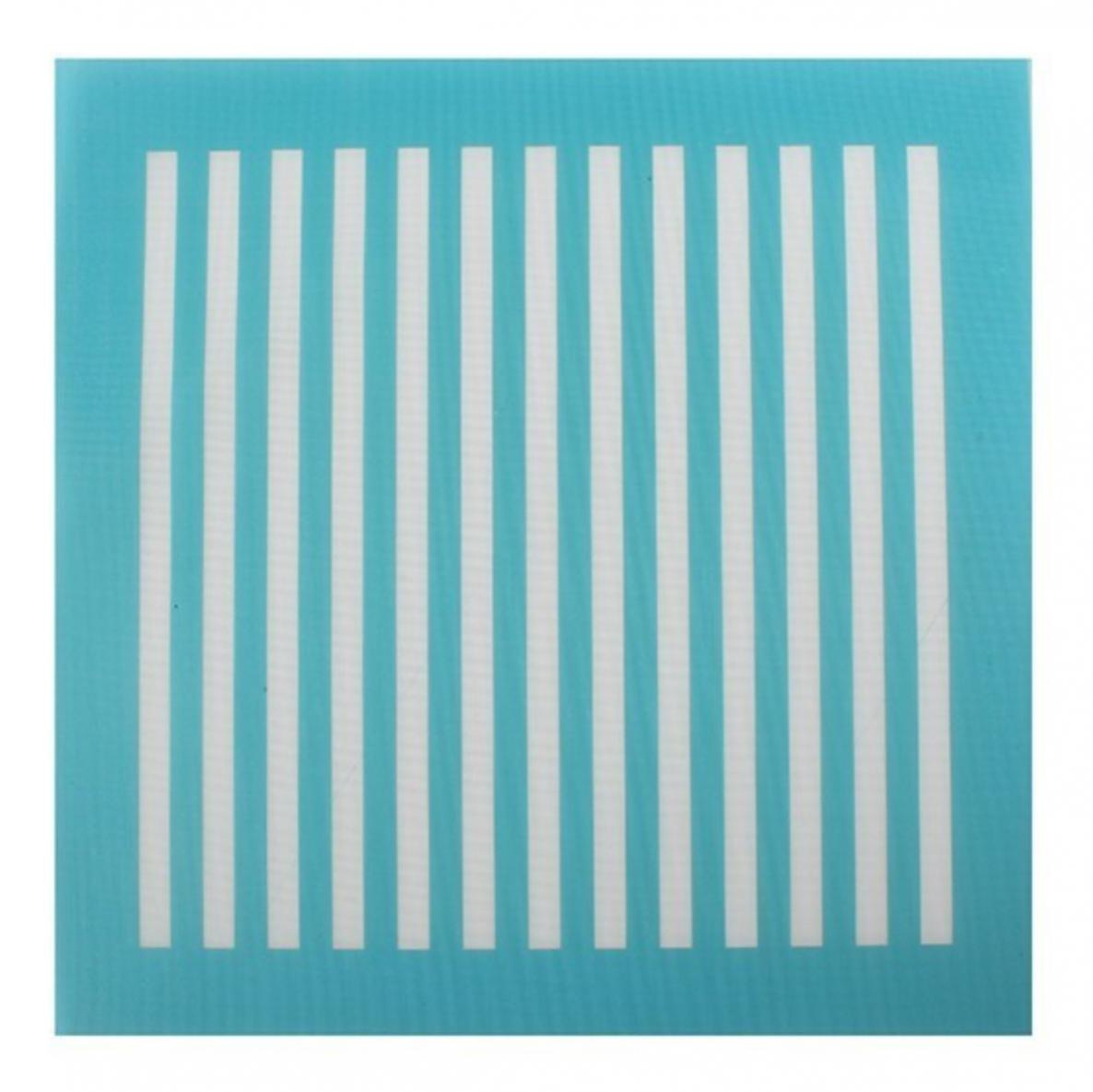 Discover a new way to add on trend patterns to cakes with the Vertical Lines Mesh Stencil! Mesh Stencils from House of Cake are a great new way of applying icing designs to the top and sides of cakes. Spread royal icing with a palette knife across the stencil to apply the design to the cake. Remove excess icing with a scraper and slowly peel stencil away from the cake. For best results, the consistency of the royal icing should be thin enough so it drips slowly from the spoon. To achieve this, add water to thin the icing. For white patterns, add whitener to the royal icing to allow the pattern to stand out or use any shade from the Colour Splash Concentrated Food Colours range to colour the royal icing. For a metallic finish, use House of Cake Gold or Silver Writing Icing and spread through the stencil. Wash and dry the stencil between applications and after use. For repeat patterns, allow icing to dry before next application. Stencil measures 140 x 150mm.