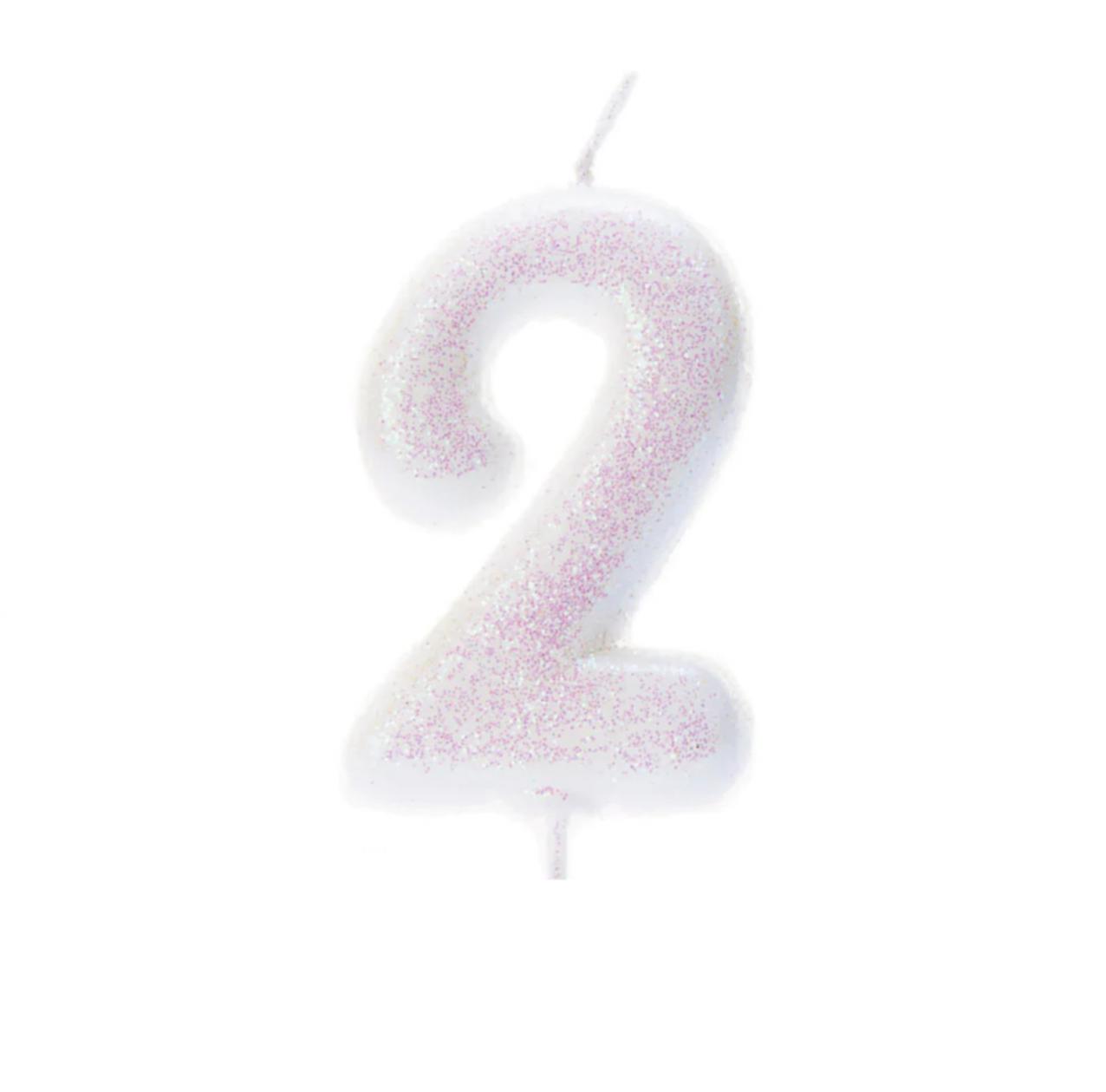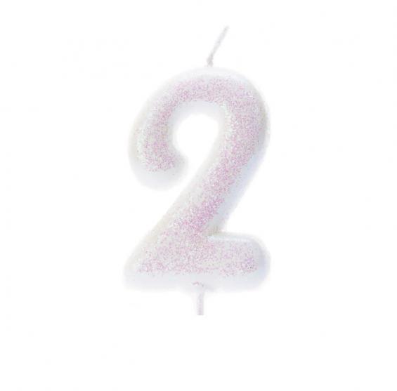 Make a wish on this gorgeous number 2 glitter candle! The contemporary font and iridescent glitter finish create an eye-catching custom cake topper.