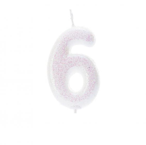 Make a wish on this gorgeous number 6 glitter candle! The contemporary font and iridescent glitter finish create an eye-catching custom cake topper.