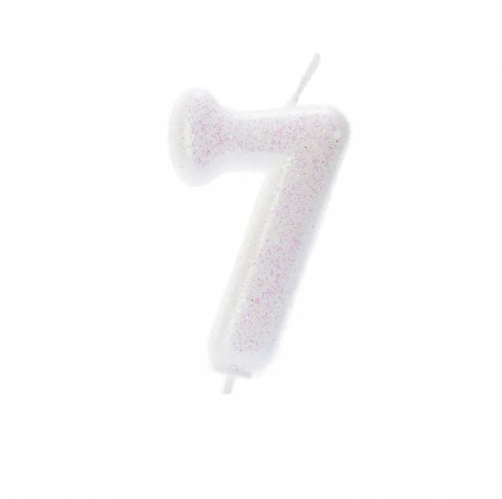 Make a wish on this gorgeous number 7 glitter candle! The contemporary font and iridescent glitter finish create an eye-catching custom cake topper.