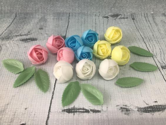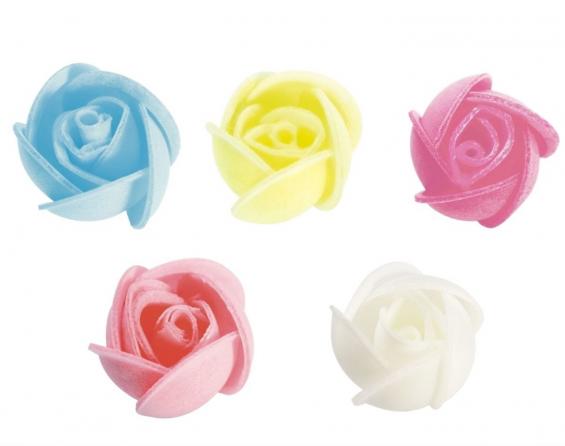30mm Edible Wafer Roses, 100 per box. These decorations are made using azo free colours. These pretty, three dimensional cake decorations are a quick and easy way to make a cupcake extra special.