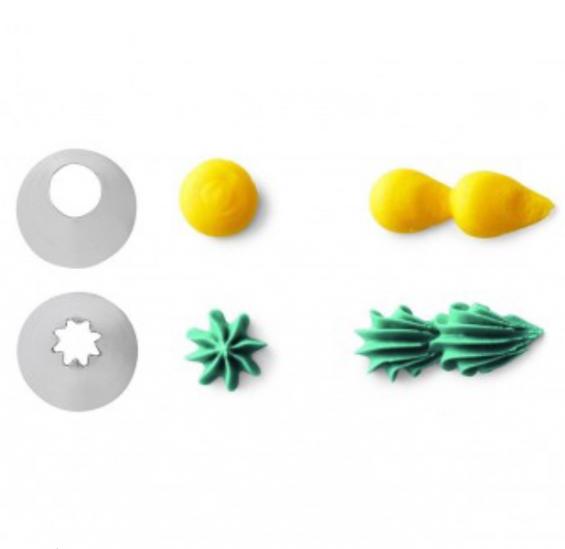 Tip #12 - Want your dessert to be the star of the table? This open star decorating tip pipes drop flowers, shells, swirls and stars with finely-cut teeth that produce deep ridges. It's a great tool for any decorator and can be used with standard decorating bags and couplers. Tip #21 - Perk up your cupcakes and cakes with perfect pearls and piping. This round decorating tip is ideal for balls, dots, lettering, outlines and figure piping. It's a great tool for any decorator and can be used with standard decorating bags and couplers.