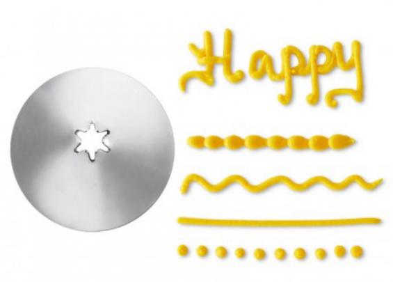 Star techniques and drop flowers; the finely cut teeth create decorations with many ridges.